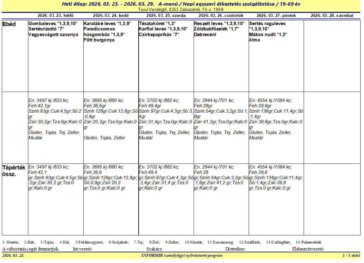 Kedves Étkezők! A következő heti étlapokat dátum szerint találják sorban lefele. Jó étvágyat kívánunk! Turul Vendéglő dolgozói